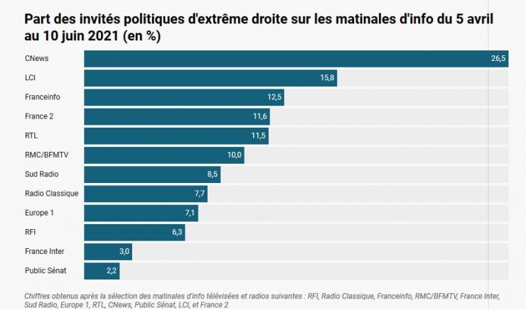 Ce qui me saute aux yeux, moi, ce sont les 14 médias, sur les 16 sélectionnés pour cette infographie, qui donnent plus de 50% de visibilité aux gauchistes de LREM, PS, FI, EELV, PCF,… avec une part disproportionnée pour les porte-paroles du gouvernement (on sait d’où viennent les financements de tous ces médias !). Et encore, je n’inclue pas (c’est très vilain de ne pas être inclusif !) la droite molle des LR et autres imposteurs qui sont des collabos de première (sinon les proportions des gauchistes dans les médias atteindraient des valeurs autrement plus honteuses et scandaleuses) !