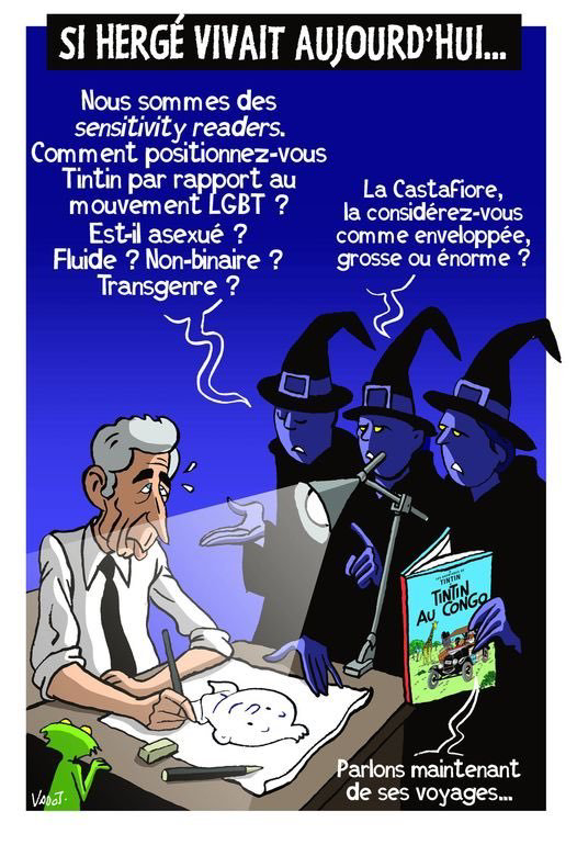 Le dessinateur Vadot, quant à lui, résume très bien la situation avec son illustration en début de billet et Hergé doit sûrement, à défaut de se retourner dans sa tombe, se tordre de rire devant la risible inquisition actuelle de la bien-pensance !