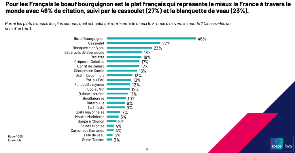 Bon, ceci constaté, nous pouvons aussi nous dire qu’il ne s’agit pas d’un classement des plats préférés des Français ou considérés comme tel (nous aurions des surprises et le kebab ou le tajine feraient sûrement leur apparition… misère !) et que l’échantillon, soi-disant représentatif de la France, utilisé pour ce sondage ne contient pas dans de bonnes proportions nos concitoyens des banlieues aux origines diverses et variées.