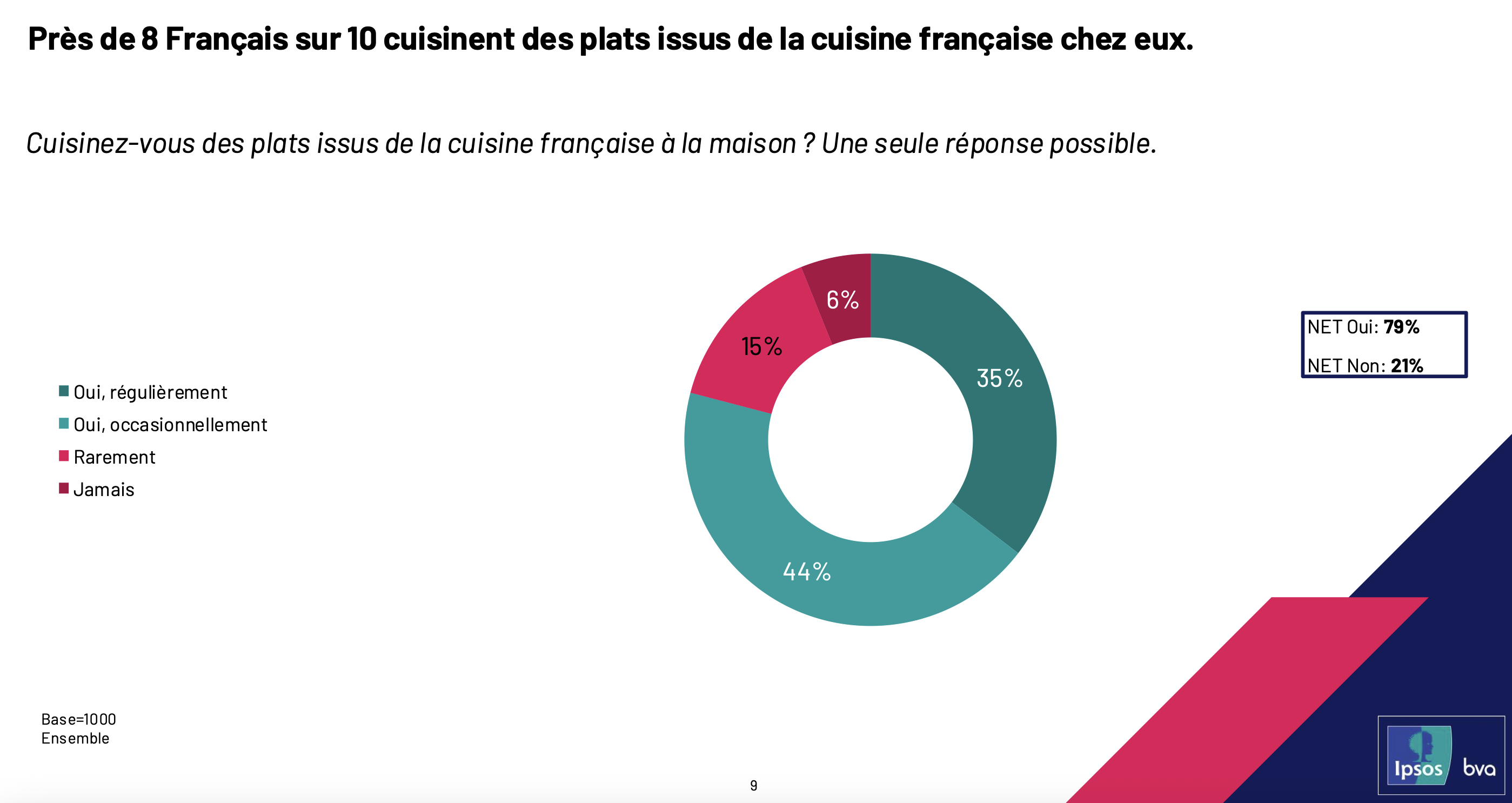 En tous les cas, cette dernière étude IPSOS qui vaut ce qu’elle vaut, permet de garder espoir quant à l’avenir de l’esprit français, de la sauvegarde d’un certain savoir-faire et d’une culture nationale typique. En effet, la gastronomie française ne semble pas dépérir et notre peuple (enfin, ce qu’il en reste) accorde une place des plus importantes au « fait-maison » traditionnel (79%), basé sur la transmission d’un héritage culinaire séculaire.