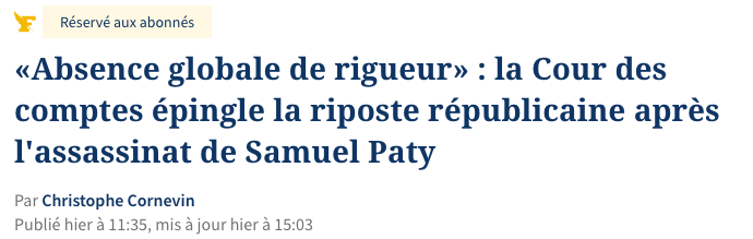 Ainsi, la dernière pépite de Marlène concerne sa responsabilité manifeste dans la gestion totalement catastrophique et malhonnête d’argent public, les Fonds Marianne, qui devait financer des projets pour contrer l’expansion idéologique de l’islamisme, suite à l’exécution de Samuel Paty (cf. Le Figaro du 4 mars et l’article de Christophe Cornevin).