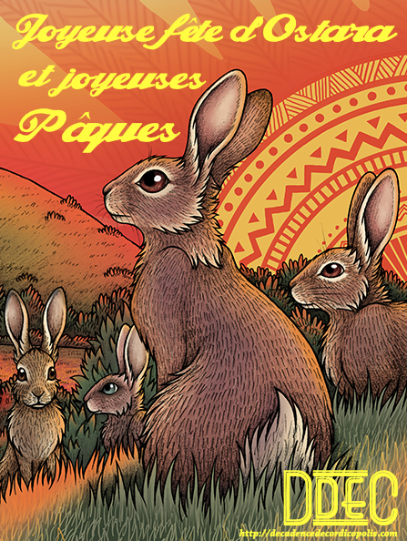 « À l’avènement du christianisme la fête de Pâques – qui est la célébration de la résurrection du Christ (rappelons que la fête de Pâques a longtemps été la plus importante de la tradition chrétienne et qu’elle marquait le début de l’année, et cela jusqu’en 1563) – remplaça la fête d’Ostara ou fête du printemps, qui est la fête du renouveau, de la fécondité et de la fertilité dont les origines sont très anciennes.