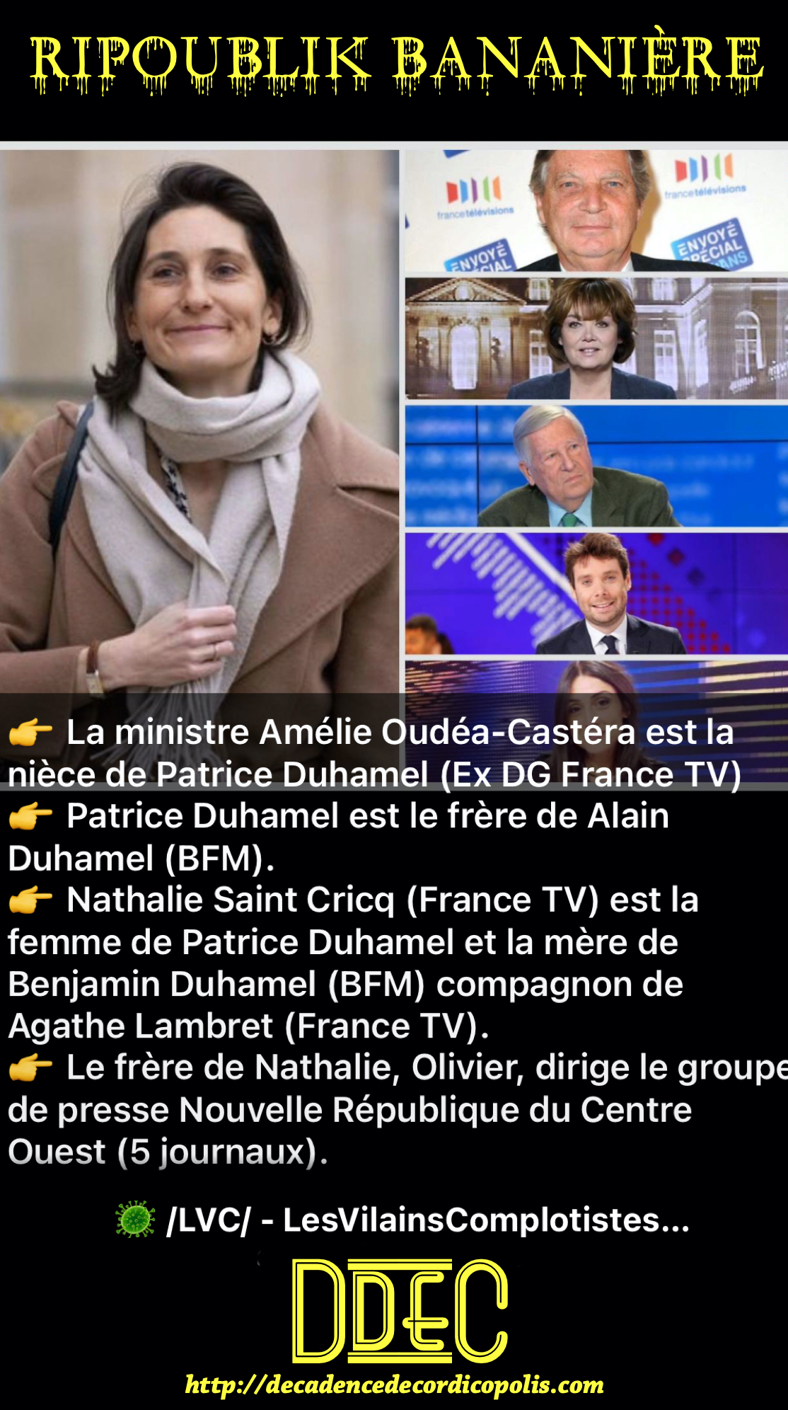 Tous ces liens proches entre politiques, merdias, et autres précieux rouages de la mécanique d’expansion du progressisme de la « ripoublik exemplaire », sont écoeurants et lamentables ! Et je n’évoque même pas le délabrement de la santé publique (a priori, les urgences ne sont plus un souci et ne sont plus débordées !), la décrépitude de l’Éducation Nazionale (nous sommes au top au classement PISA et la sécurité dans les établissements scolaires est assurée) ou la décadence généralisée du monde de l’Art…