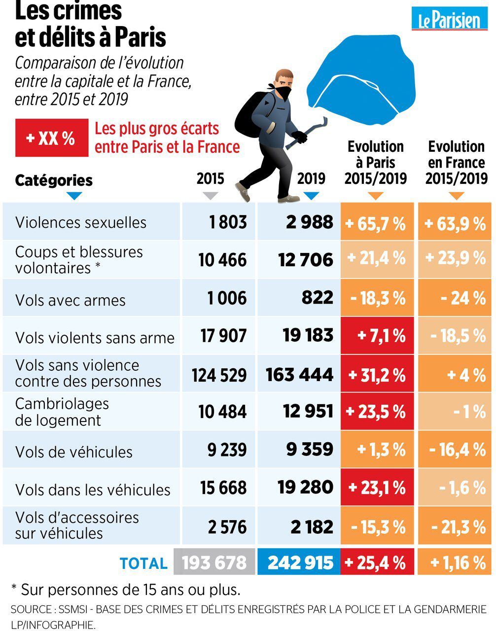 Ce qui est sûr, c’est que cette commission pour la lutte contre l’insécurité n’a pas servi a grand chose au vu des chiffres de la délinquance de ces dernières années (comme ceux concernant les crimes et délits à Paris de 2015 à 2019, infographie ci-contre trouvée dans Le Parisien du 29 janvier 2020) et de l’étendue grandissante du pouvoir des racailles allogènes dans les banlieues du Frankistan !
