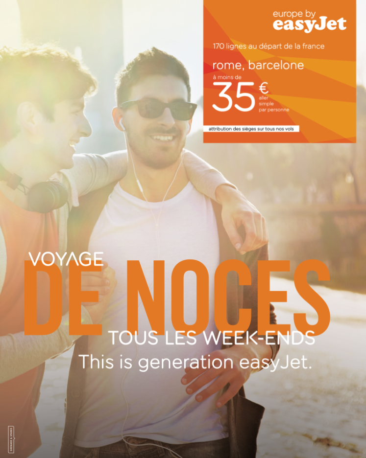 Nous commencerons par cette publicité qui passe régulièrement en ce moment, celle pour la compagnie d’avions Easyjet, et qui a été réalisée par Mark Zibert (aux nombreuses créations pourtant très originales et d’une esthétique parfois surprenante, bien loin de la soupe idéologique ci-après…).